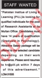 Latest Pakistan Institute of Living And Learning PILL Research Posts Multan 2025