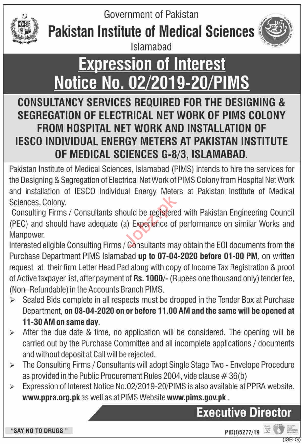 Vacancies in Pakistan Institute of Medical Sciences PIMS Advertisement March 2020