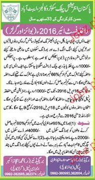 Pakistan International Public School Admission in Class XI in Abbottabad. Read newspaper ad for exact details.