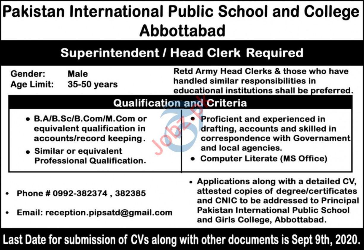 Vacancies in Pakistan International Public School & College Advertisement September 2020