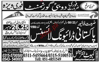 Pakistan License Holder Drivers are required in Dubai Through Kahout International Oversea Employment. Food, Medical and Residence will be provided by the Company. Test and Interview will be held on 26 November 2017.