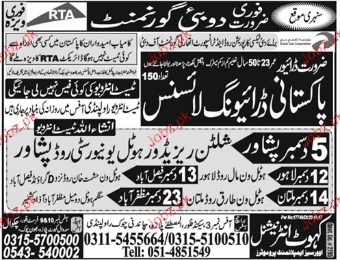 Latest Kahout International Oversea Employment Driving Posts Dubai 2025
