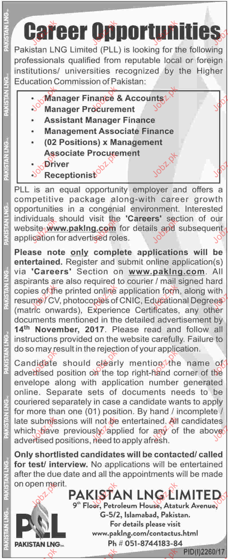 Latest Pakistan LNG Limited PLL Management Posts Islamabad 2025