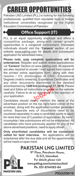Latest Pakistan LNG Limited PLL IT Posts Islamabad 2025