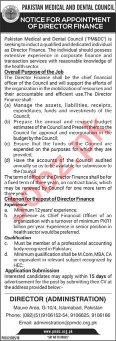Pakistan Medical & Dental Council PMDC Finance Director Jobs