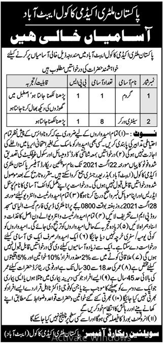 Pakistan Military Academy PMA Jobs 2021 In Abbottabad KPK