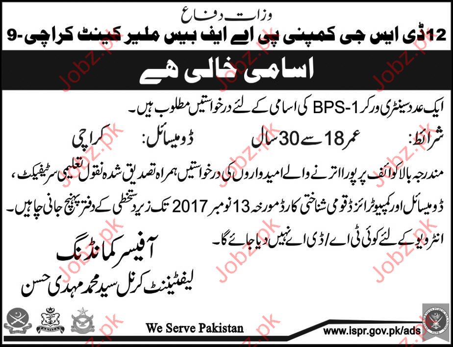 Latest Ministry of Defence Labor Posts Karachi 2025