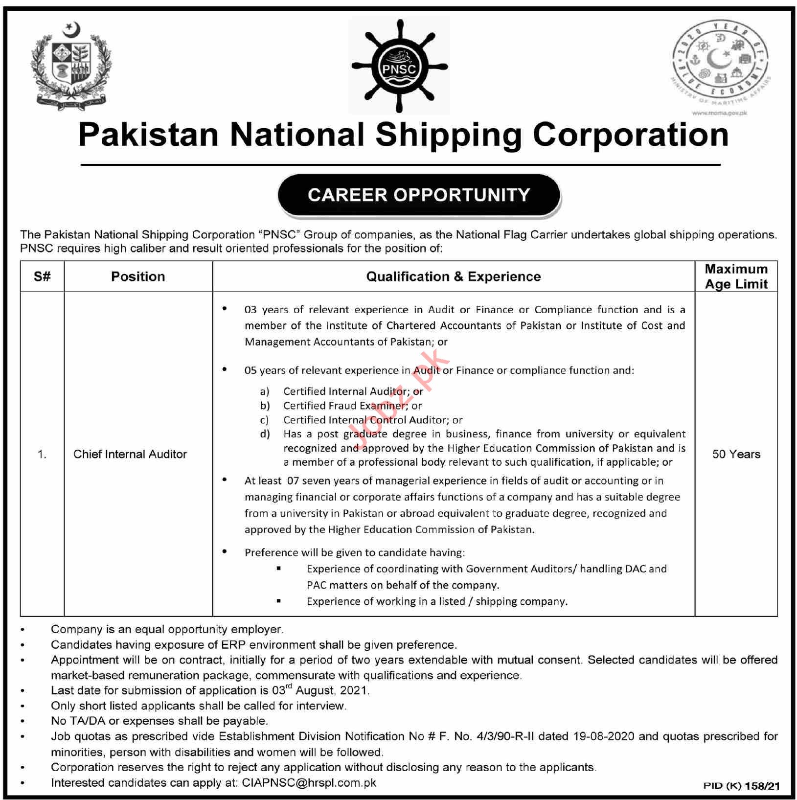 Vacancies in Pakistan National Shipping Corporation Advertisement July 2021