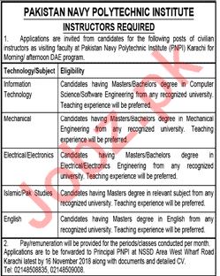 Vacancies in Pakistan Navy Polytechnic Institute Advertisement November 2018