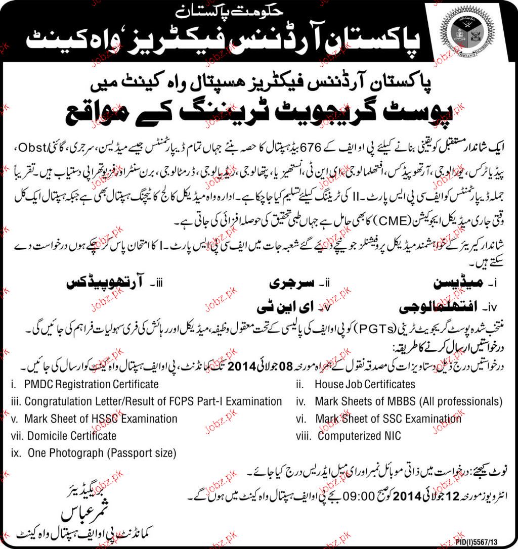 Pakistan Ordinance Factories Wah Cant Admission in PGD in Wah Cant. Read newspaper ad for exact details.