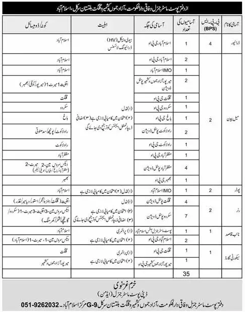 Latest Pakistan Post Office Posts Gilgit 2025