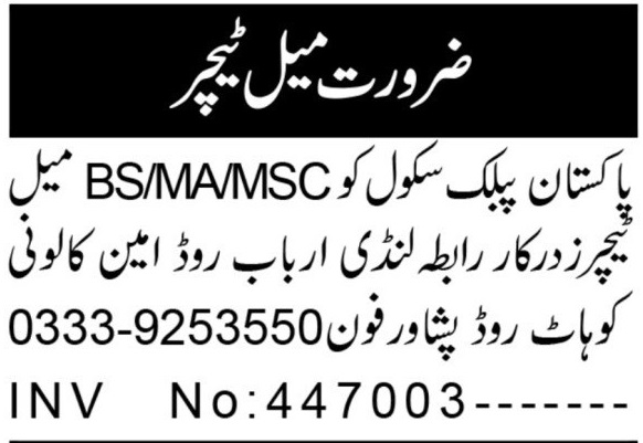Latest Pakistan Public School Teaching Posts Peshawar 2025