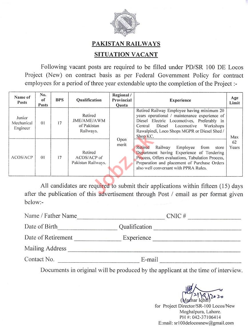 Vacancies in Pakistan Railways Advertisement October 2020