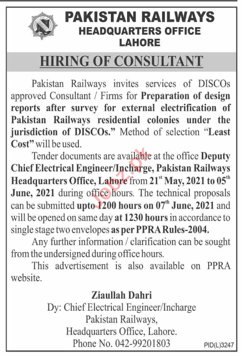 Pakistan Railways Headquarter Lahore Jobs 2021 Consultant