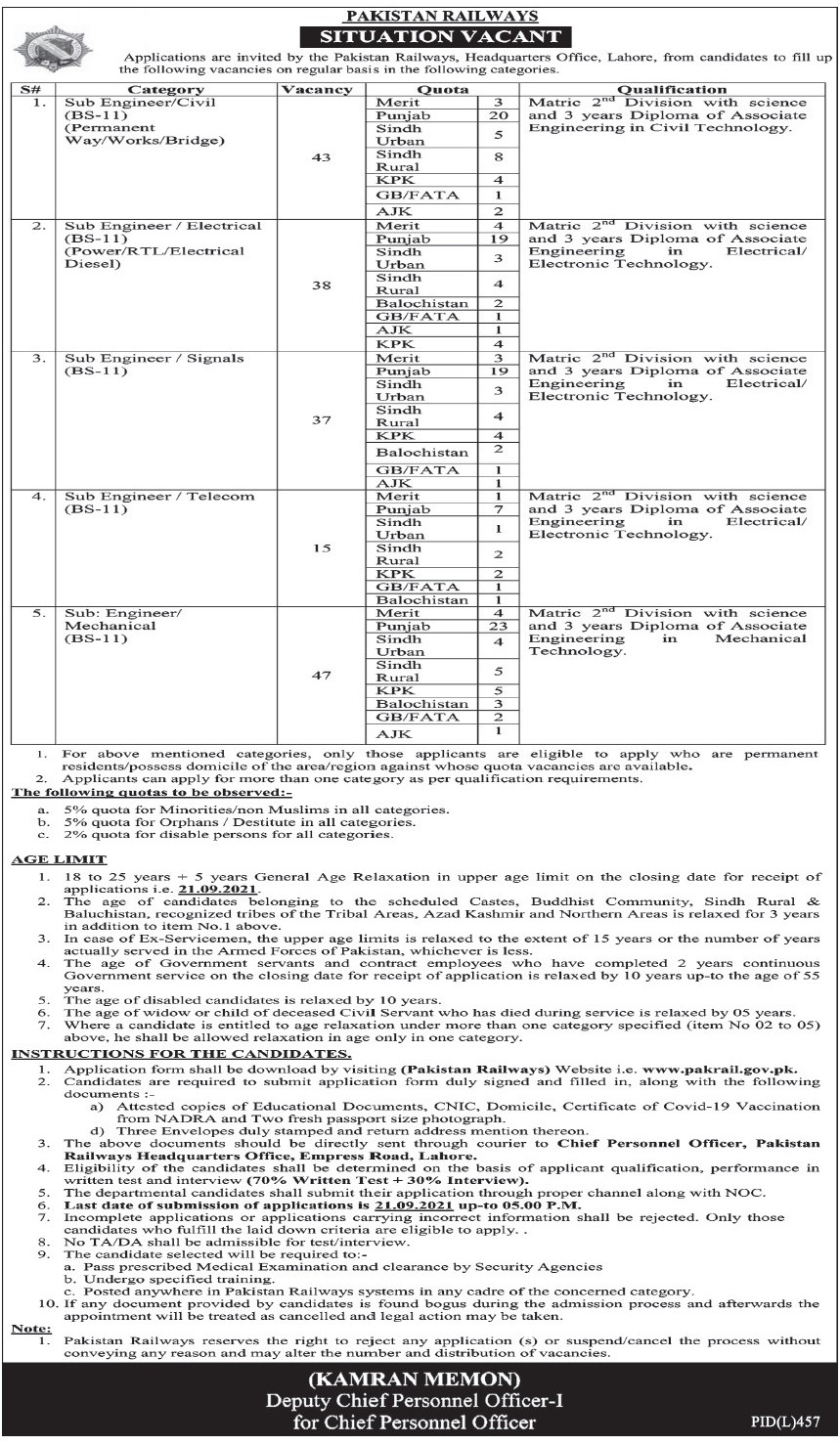 Latest Pakistan Railways Engineering Posts Lahore 2025