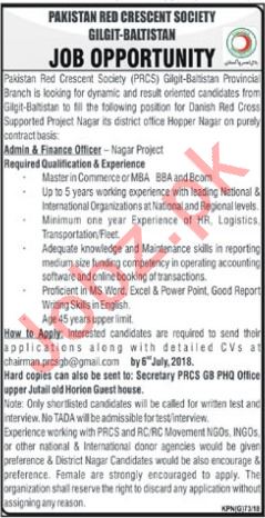 Pakistan Red Crescent Society PRCS Gilgit Jobs 2018