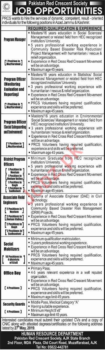 Vacancies in Pakistan Red Crescent Society PRCS Advertisement May 2019