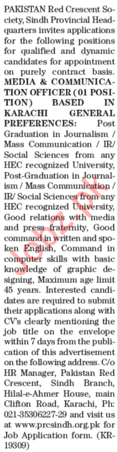 Latest Pakistan Red Crescent Society PRCS IT Posts Karachi 2025