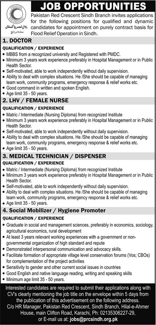 Latest Pakistan Red Crescent Society PRCS NGO Posts Karachi 2025