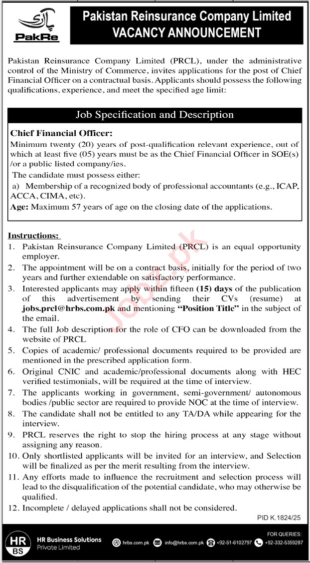 Vacancies in Pakistan Reinsurance Company Limited PRCL Advertisement November 2025
