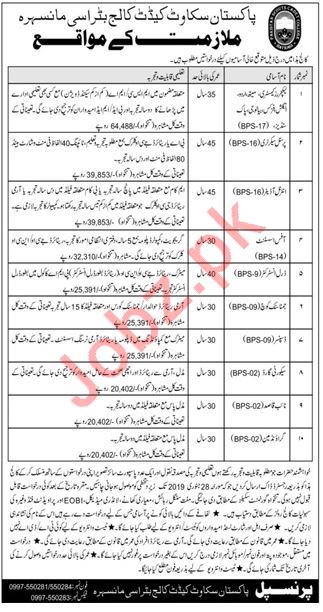 Pakistan Scout Cadet College Batrasi Manshera KPK Jobs 2019