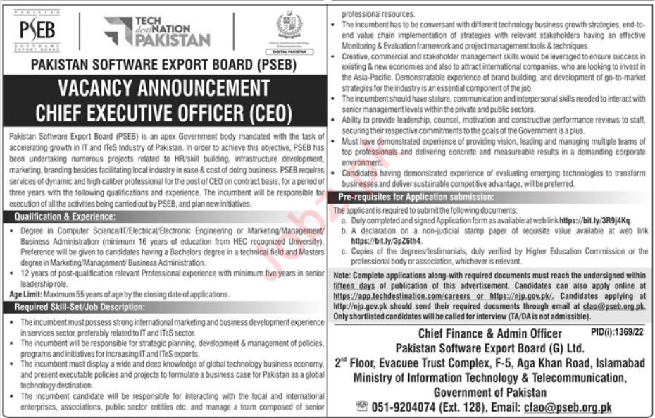 Vacancies in Pakistan Software Export Board PSEB Advertisement September 2022