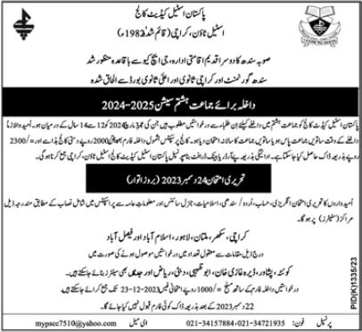 Pakistan Steel Cadet College admissions 2023 for 8th Class has been announced. Students can enroll for admissions in Pakistan Steel Cadet College Karachi Kabirwala Sindh Pakistan for academic year 2023 to continue campus based or online education in Science School. Students who want to enroll for academic session 2023 in Middle qualification and admission criteria for Government institute can apply till last date 23 December 2023. Read newspaper ad for exact details.