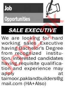 Pakland Builders Islamabad Jobs 2020 For Sales Executive