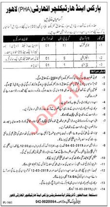 Latest Parks & Horticulture Authority Admin Clerical Posts Lahore 2025