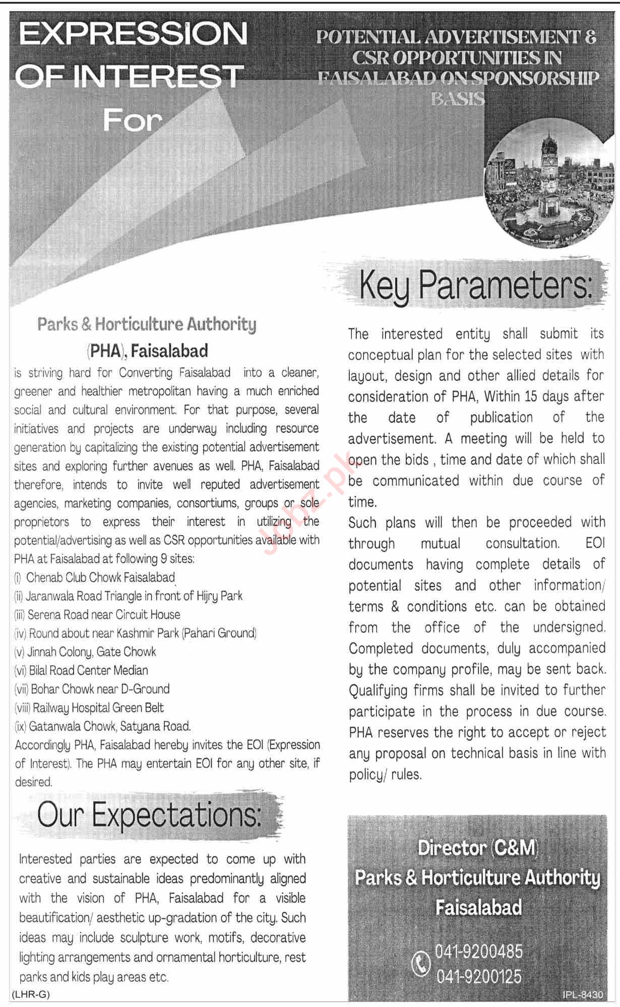 Parks & Horticulture Authority Faisalabad Jobs Announcement