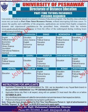 Part Time Tutors / Resource Persons Job In University Of Pe