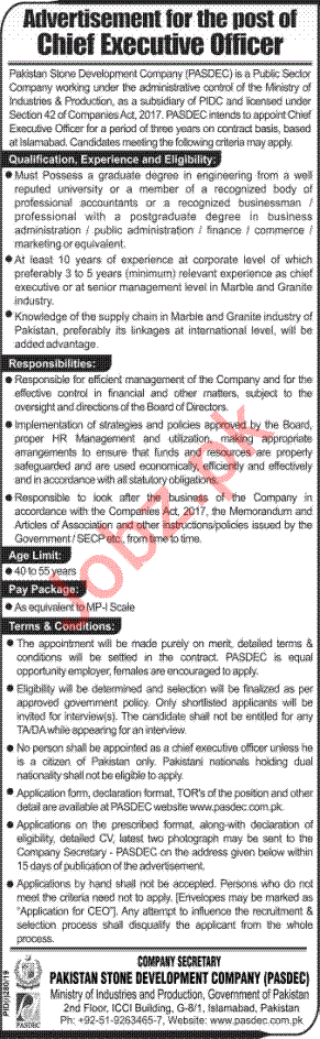 PASDEC Job 2019 For Chief Executive Officer