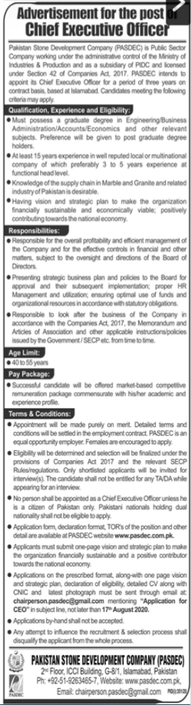 PASDEC Job 2020 For Chief Executive Officer CEO