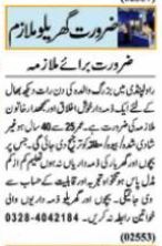 House jobs advertisement dated about 14 June 2023 in daily Nawaiwaqt Newspaper invites application for the vacant post of patient care and care taker in Rawalpindi, rawalpindi Punjab Pakistan. Candidates with Middle etc. educational background will be preferred.