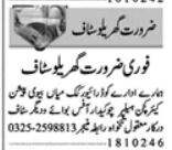 House is looking for candidates for following posts as per job advertisement published in daily Dunya Newspaper of October 18, 2024 for location Lahore, lahore Punjab Pakistan: