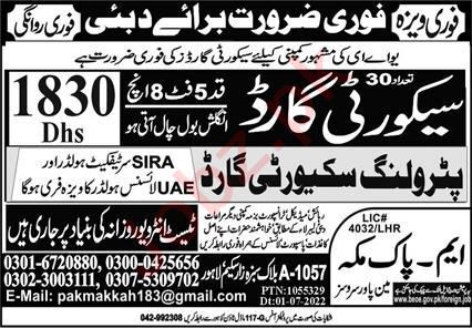 M Pak Makkah Manpower Services latest Overseas Security jobs and others can be applied till August 11, 2022 or as per closing date in newspaper ad. Read complete ad online to know how to apply on latest M Pak Makkah Manpower Services job opportunities. Salary varies from 113000. Earn more by overtime. Employer provides medical, transport and accommodation facility.