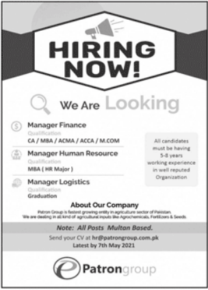 Patron Group of Companies Jobs 2021 in Multan