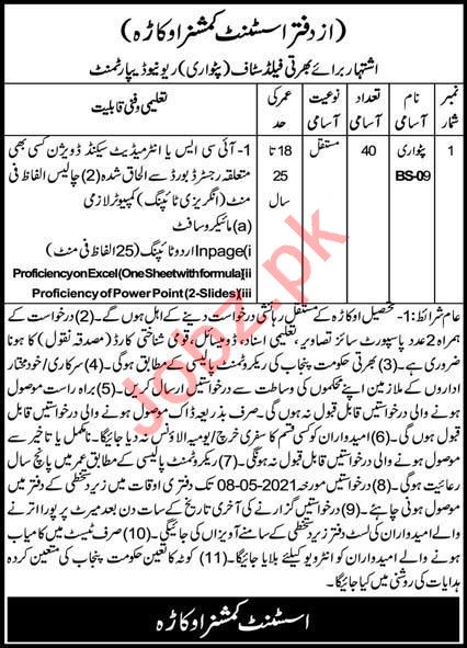 Patwari Jobs 2021 For Assistant Commissioner AC Okara