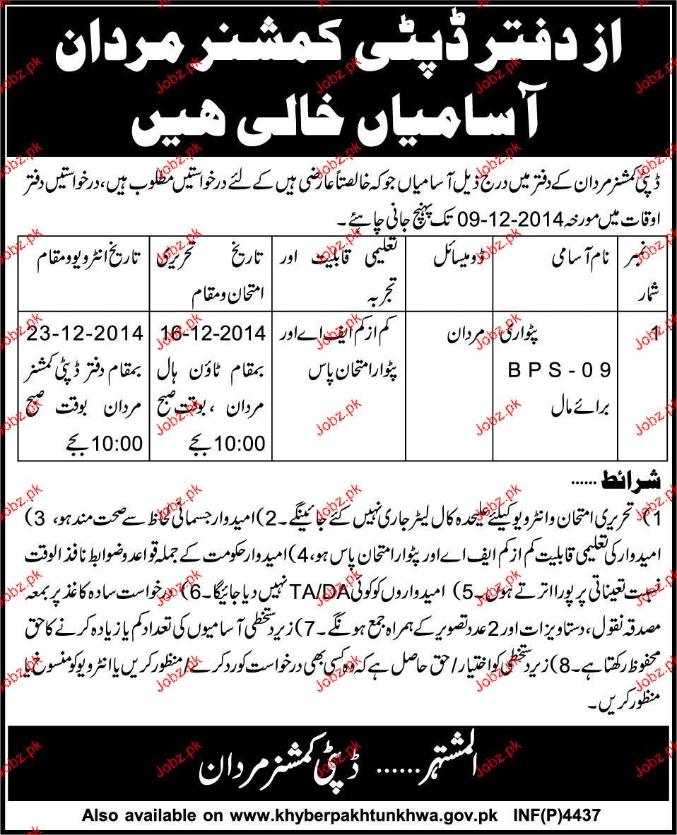 Patwaris Job in District Commissioner Office