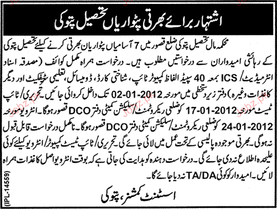 Apply as per details in job advertisement. Login to view further details of how to apply via https://www.jobz.pk online.