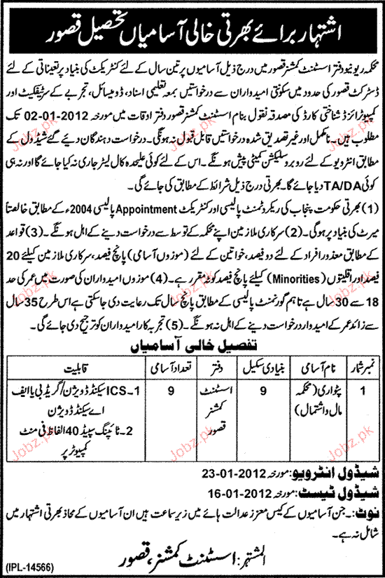 Apply as per details in job advertisement. Login to view further details of how to apply via https://www.jobz.pk online.