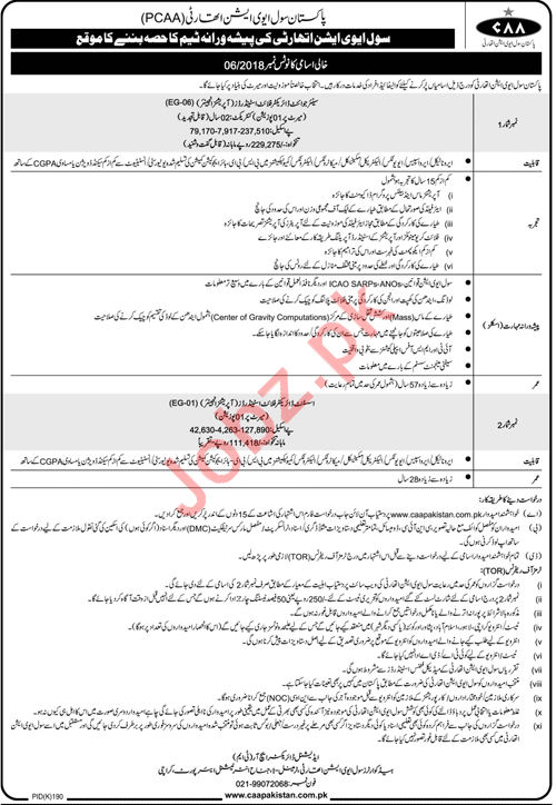 Latest Pakistan Civil Aviation Authority CAA Airlines Posts Karachi 2025