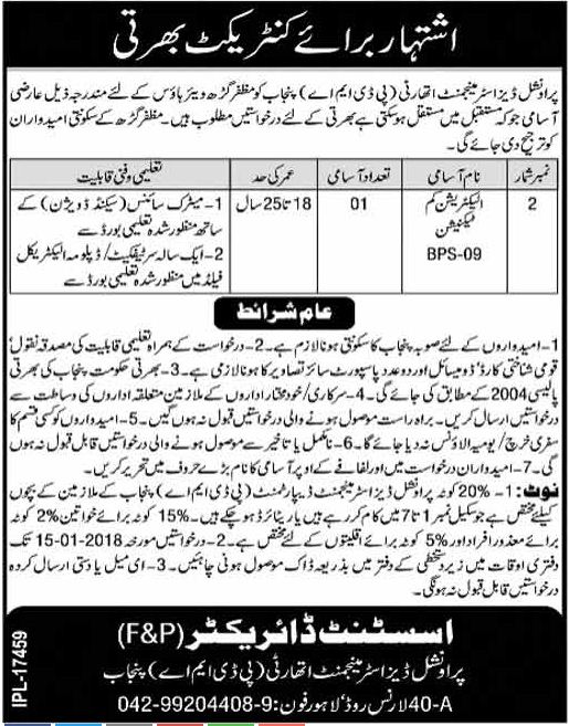 Latest Provincial Disaster Management Authority PDMA Engineering Posts Muzaffargarh 2025