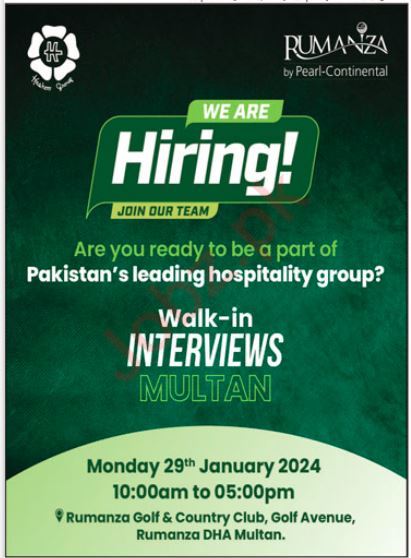 Latest Pearl Continental Hotel Management Posts Multan 2025