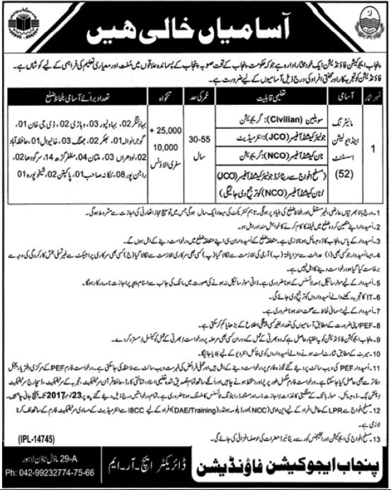 Latest Punjab Education Foundation Education Posts Lahore 2025