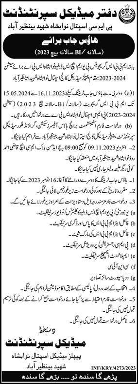 Vacant posts including house job training program are announced in Peoples Medical College Hospital Nawabshah, nawabshah Sindh Pakistan as per 25 October 2023 advertisement in daily Express Newspaper. MBBS etc. educational qualification will be preferred.