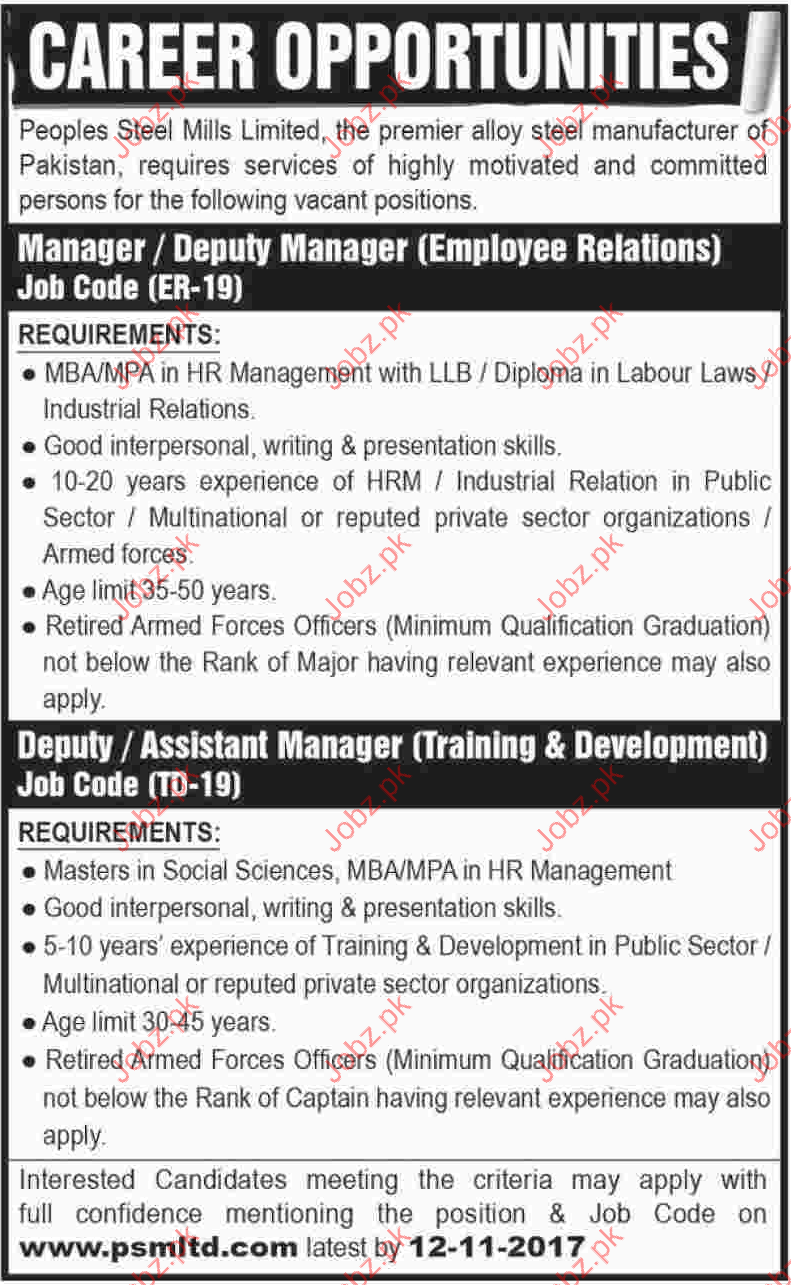 Latest Peoples Steel Mills Limited Management Posts Karachi 2025