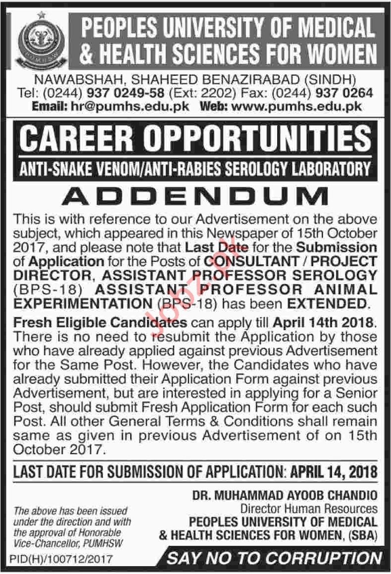 Latest Peoples University of Medical and Health Sciences PUMHS Education Posts Nawabshah 2025