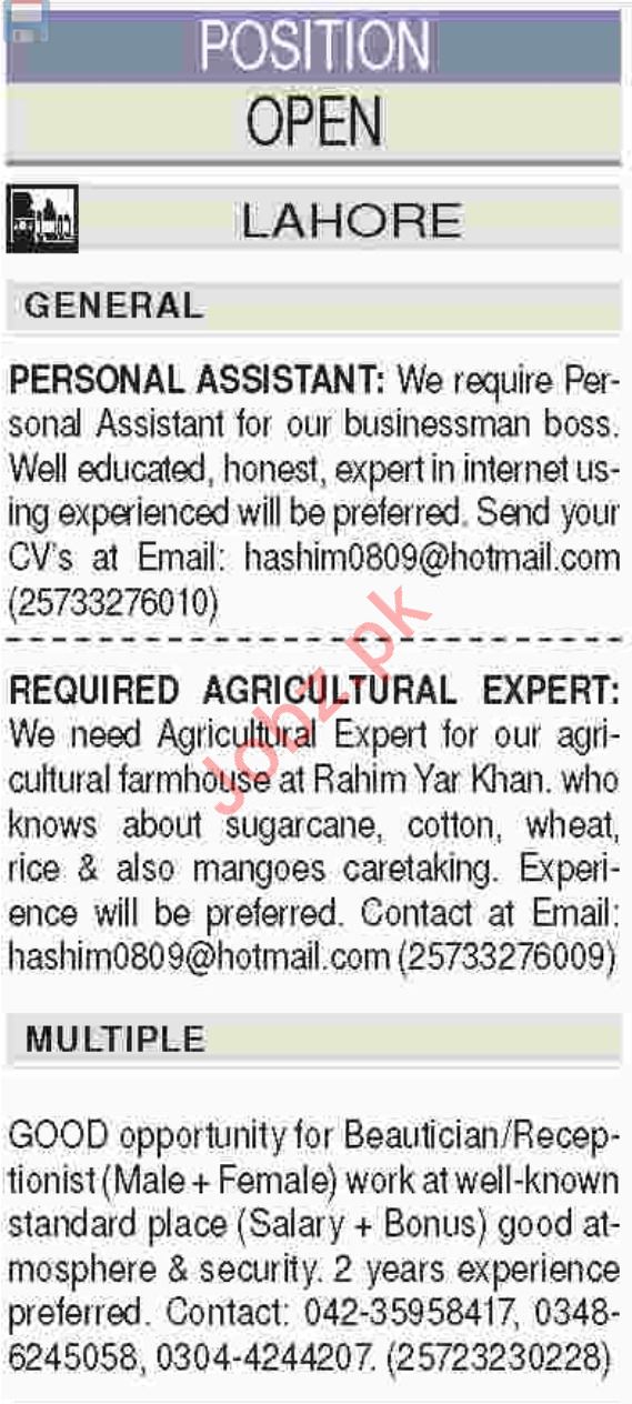 Personal Assistant, Agricultural Expert & Beautician Jobs