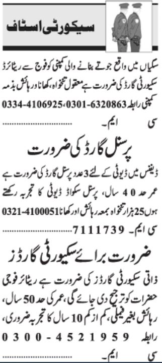 Apply at Security Company latest Classifieds jobs in Security and departments before closing date which is around January 29, 2022 or as per closing date in newspaper ad. Read complete ad online to know how to apply on latest Security Company job opportunities. On job accommodation and food facility is provided.